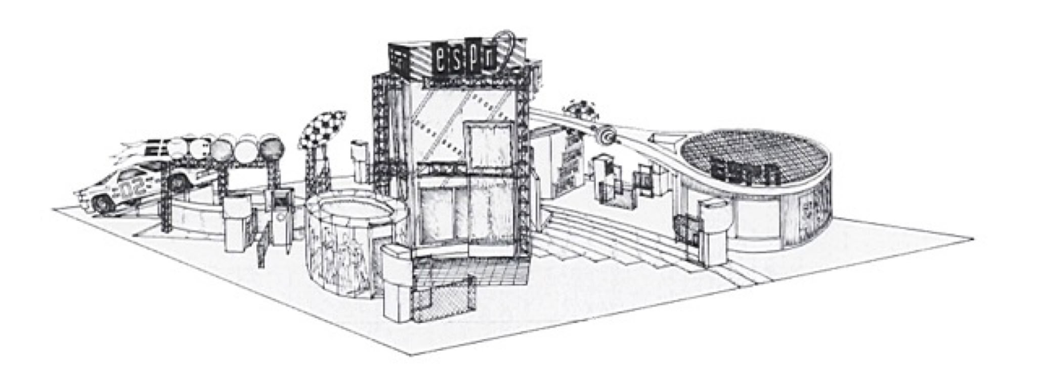 This exhibit was designed so that the elements easily rearrange into a 30’ x 90’ configuration for the Western Cable Show. The proposed layout continues with the concept of “Theatre of the Absurd” and also incorporates all of ESPN’s programs so the viewer understands the full scope and potential of ESPN.